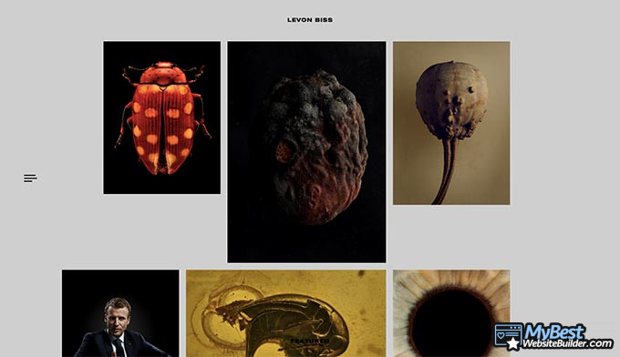 levonbiss.com'u ziyaret ettiğinizde karşınıza büyütülmüş büyük bir resim çıkacak. Tıkladığınızda sizi sitenin alakalı bölümlerine yönlendirecek. Açık konuşmak gerekirse fotoğraf görüntülerken oldukça iyi bir izlenim uyandıran, ihtişamlı bir tasarıma sahip. En iyi fotoğrafçılık siteleri arasında Levon Biss'in sitesi oldukça steril ve iyi yapılmış bir site.